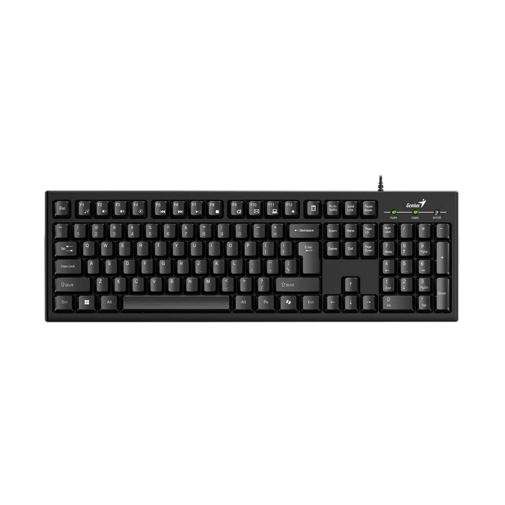 Teclado multimedia con cable, Tecla AI Copilot para activar el asistente Copilot (para Windows 11 o superior), 12 teclas multimedia FN, Tecla de calculadora, Diseño resistente a derrames, Teclas de perfil bajo, Conexión USB Plug and Play