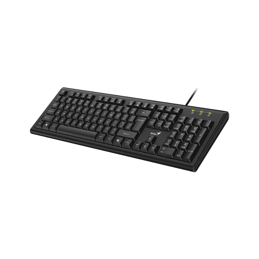 Teclado de tamaño completo con cable, Tecla de Copilot con IA para activar el asistente de Copilot (para Windows 11 o superior), Tecla FN multimedia de 12 teclas, Diseño resistente a derrames, Tecla de perfil bajo, USB Plug and play