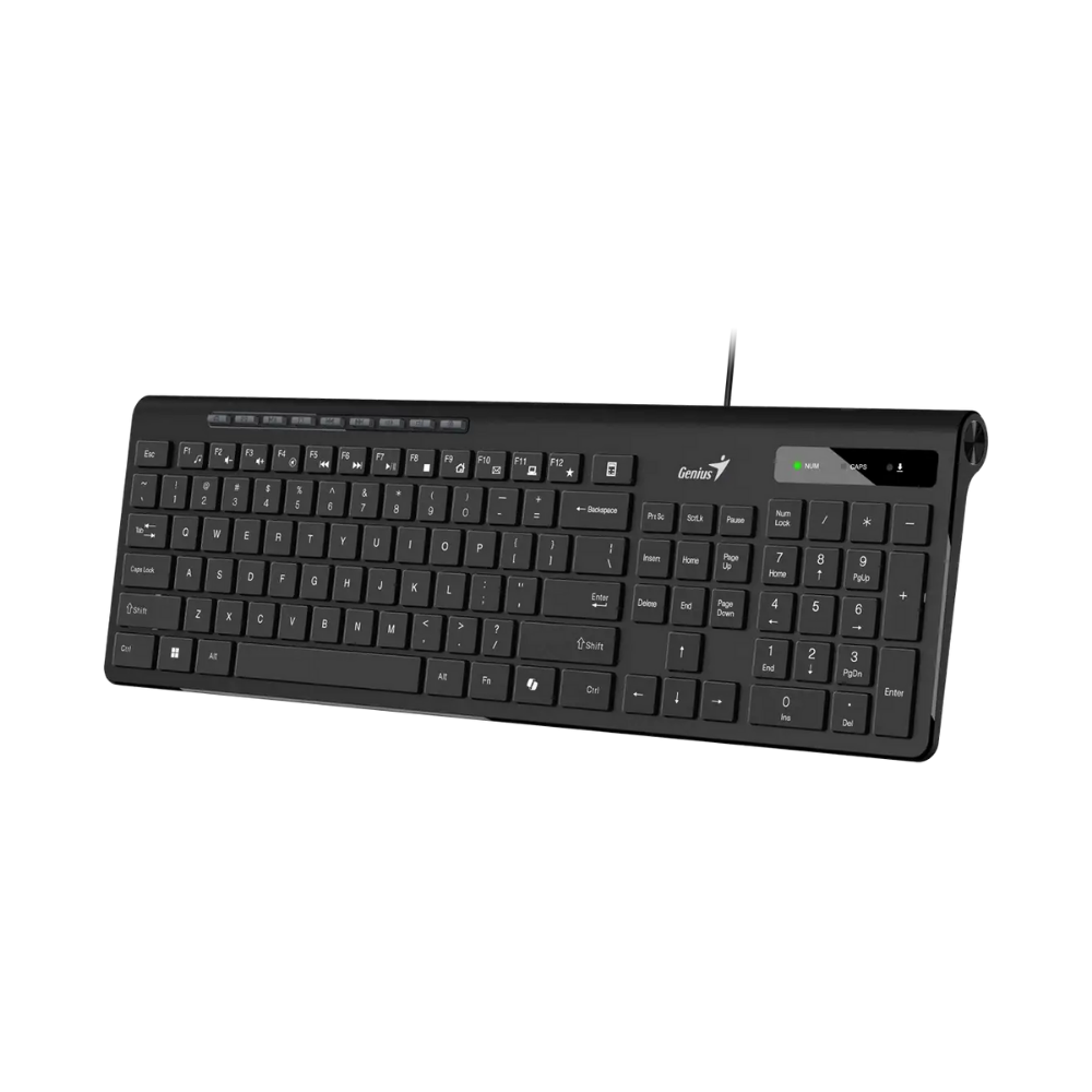 Teclado delgado de 2.4GHz, Tecla AI Copilot para activar el asistente Copilot (para Windows 11 o superior), Teclas de chocolate cómodas y silenciosas, 9 teclas multimedia y de acceso rápido, Diseño ergonómico de base