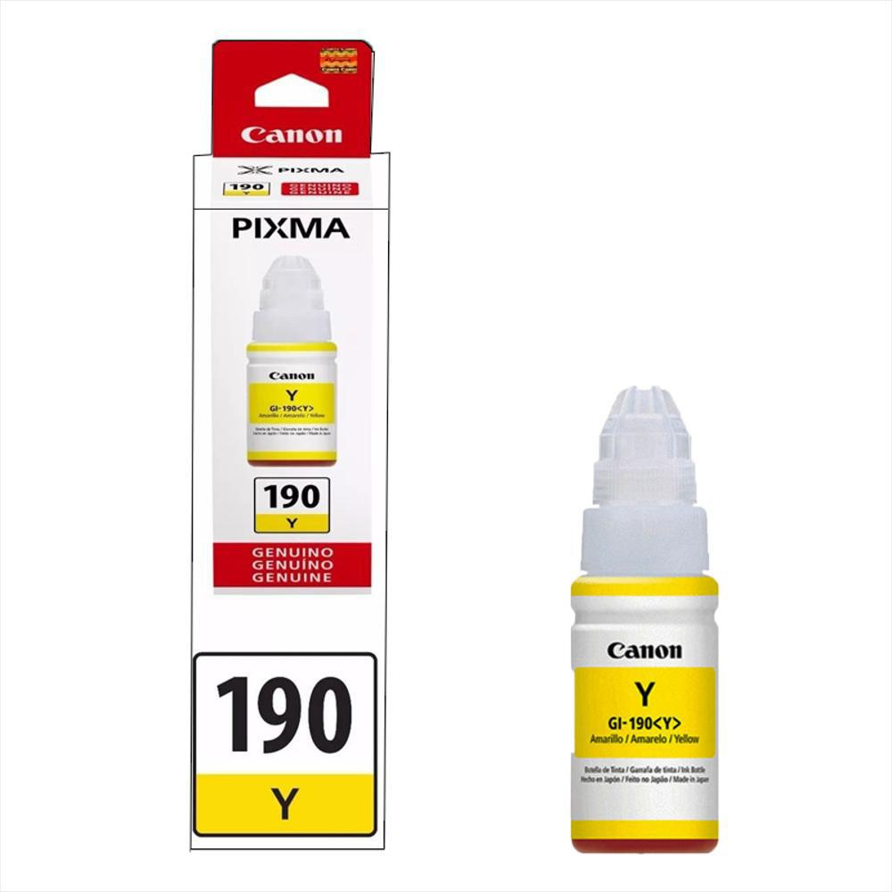 En Tecnoprocesos Colombia, te ofrecemos la botella de Tinta Amarilla Original Canon GI-190. Este consumible está diseñado para las impresoras de la serie Canon Pixma MegaTank (como la G3100, G4100, G2100, etc.), brindando una impresión a color de alto volumen con la máxima luminosidad y la confiabilidad de los productos originales Canon.