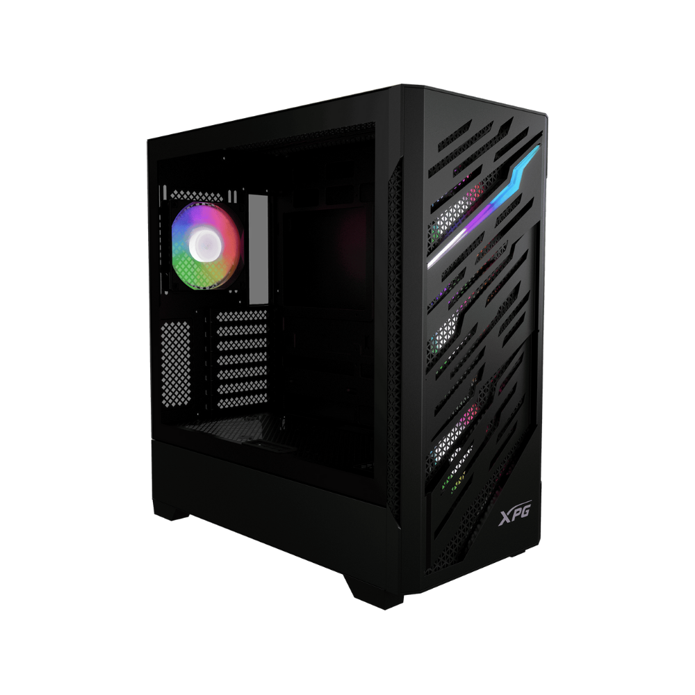 XPG STARKER AIR BTF, Negro, soporta placas base con diseño de conector inverso, Torre Media ATX, 2.5” y 3.5” pulgadas x2, I/O: USB-C x1, USB-A x2, Audio HD x1, control LED x1, Reinicio x1, Poder x1, Ventilador ARGB: 4 x Ventiladores de 120mm (Frontal x3, Trasero x1), Ventilador: (Trasero x1), 1 Años de Garantía