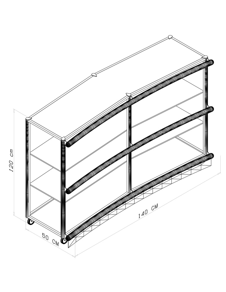 La combinación perfecta entre una vitrina de seguridad, un puesto de atención robusto y un almacén interno organizado. El Tubo Redondo Calibre 18 y la Pintura Electrostática garantizan durabilidad en el entorno de alto tráfico de una ferretería.