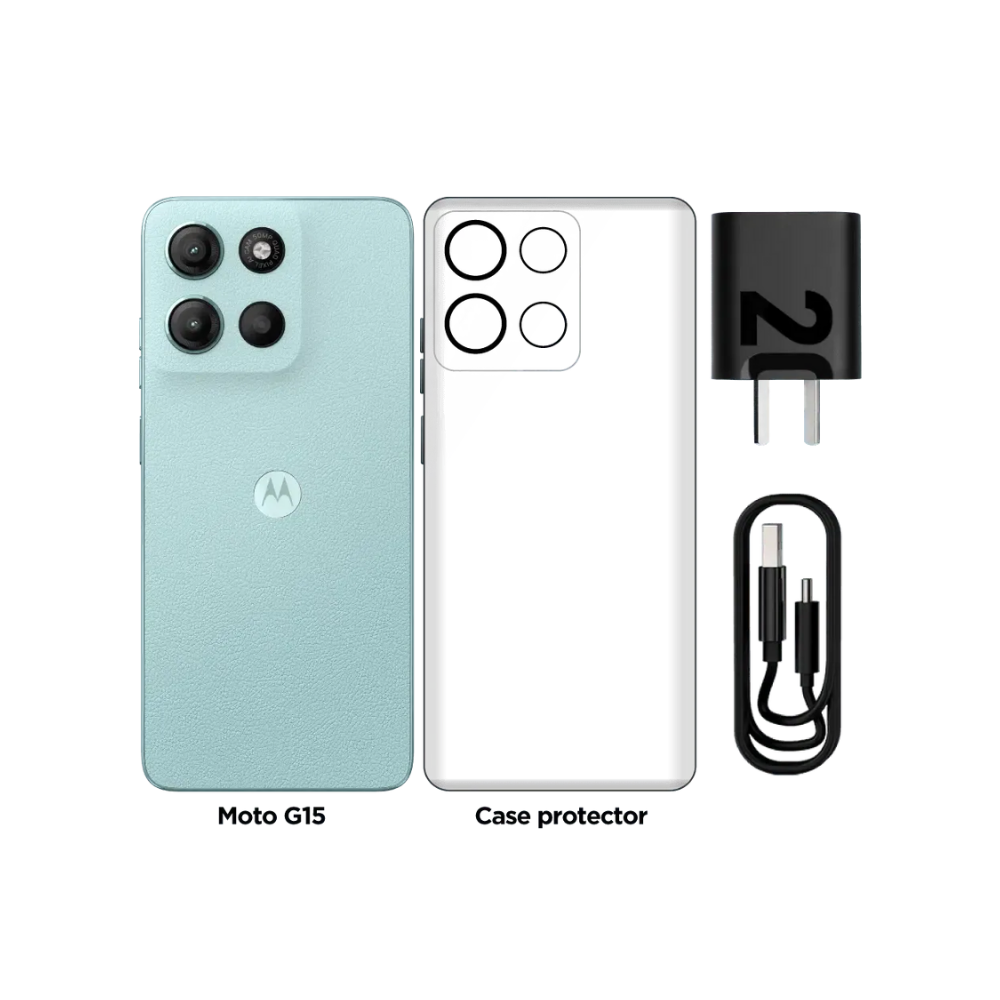 Dale vida a tu entretenimiento con el MOTOROLA G15. Disfruta una pantalla súper brillante, incluso bajo el sol. Siente el sonido envolvente con parlantes estéreo, Bass Boost y Dolby Atmos. Captura cada detalle con la cámara de principal y guardar todo lo que quieras sin preocuparte por el espacio en la memoria de 512GB. Sigue sin parar con una increíble batería con carga TurboPower. Todo en un diseño elegante con acabado en cuero vegano y resistencia al agua IP53.