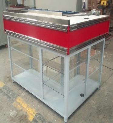 La estación de pago que genera ingresos extra. El Sistema Panorámico facilita el merchandising de último momento. Incluye una Gaveta segura para el efectivo, Pasa Cables y el impactante acabado Blanco/Rojo con Pintura Electroestática.