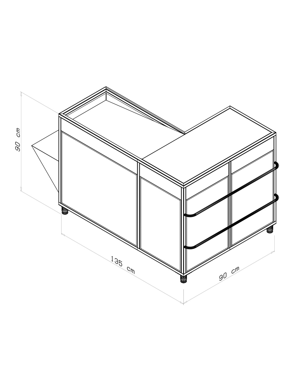 El Punto de Pago VENETON PANORÁMICO IZQUIERDO de Tecnoprocesos Colombia es la solución de checkout angular que integra estratégicamente la venta por impulso. Diseñado para optimizar el flujo de clientes hacia la izquierda, esta estación combina una estructura robusta en Lámina CR Calibre 24 con un frente de 980 mm y un lateral de 1350 mm. Su característica más notable es el Sistema de Exhibición Panorámico con Vidrio de 4 mm, que transforma el frontal en una vitrina de ventas. La Tapa de Acero Satinado Calibre 20 (asumido) asegura una durabilidad extrema para la superficie de trabajo.