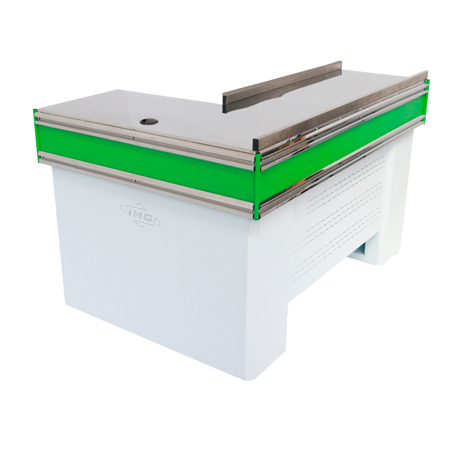 El Punto de Pago VENETON en su versión DERECHA de Tecnoprocesos Colombia es una estación de checkout angular de alta eficiencia, ideal para guiar el flujo de clientes hacia el lado derecho de la caja. Este mueble combina la resistencia de la estructura en Lámina Cold Rolled Calibre 24 con una Tapa de Acero Satinado que garantiza una superficie de trabajo duradera. La atractiva combinación de colores Blanco y Verde, aplicada con Pintura Electroestática, ofrece una imagen limpia, profesional y moderna, perfecta para negocios que desean proyectar frescura y confianza.