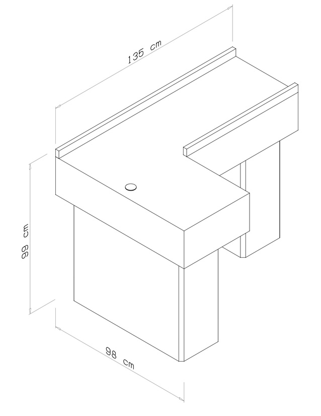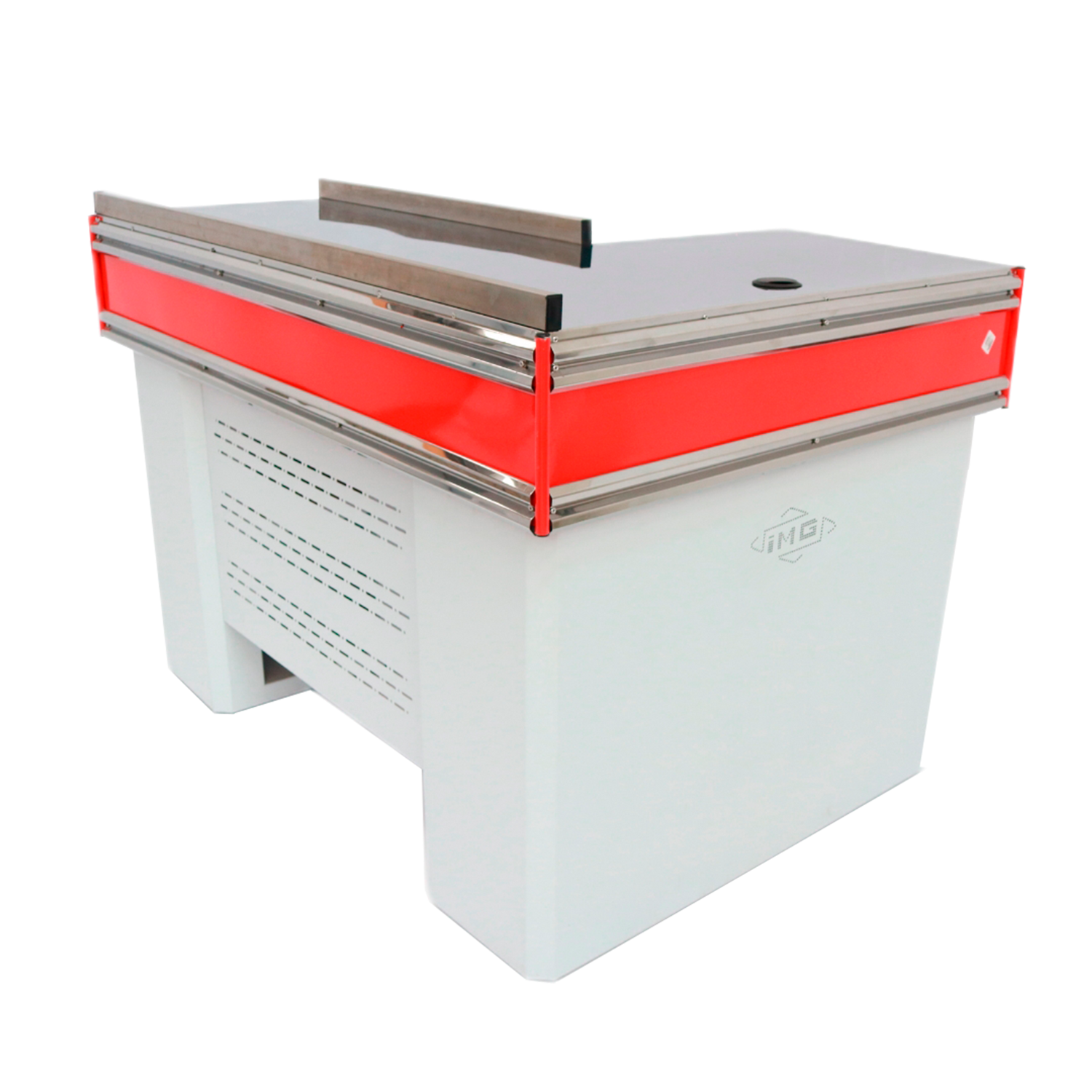 Diseñado para el flujo de clientes con orientación izquierda. La Tapa de Acero Satinado Calibre 20 garantiza una durabilidad industrial. La integración de Pasa Cables y Sistema de Bodega optimiza la funcionalidad de checkout y la organización interna.