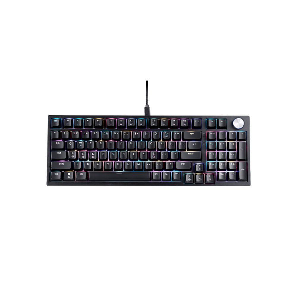 XPG SORCERER, Negro, Montaje con Junta, 97 Teclas, XPG Interruptor Mecánico Rojo Pomo de Volumen de Metal, RGB por Tecla. 100% Anti-ghosting, 2 Años de Garantía