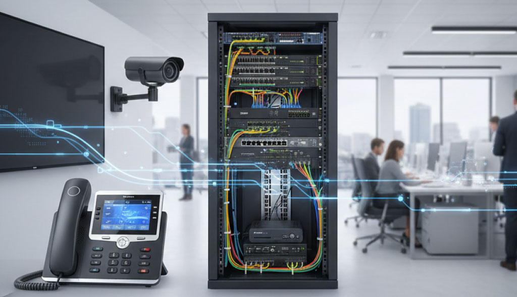 Asegure una comunicación empresarial fluida con nuestra tecnología especializada. Ofrecemos teléfonos IP (VoIP), equipos de videoconferencia y toda la infraestructura de redes necesaria, incluyendo routers y switches. Conecte a su equipo sin límites con soluciones fiables y de alto rendimiento.
